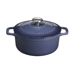 Cocotte ronde en fonte émaillée, idéale pour cuire et servir directement à table avec élégance.
